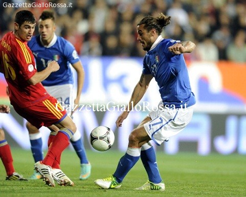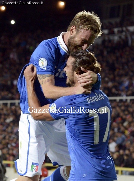ITALIA (4-3-1-2): Buffon 7, Maggio 6.5, Barzagli 6.5, Bonucci 5, Criscito 5.5, De Rossi 6.5, Pirlo 7 (29′ st Giaccherini sv), Marchisio 5.5, Montolivo 6.5 (43′ st Candreva sv), Giovinco 6.5 (15′ st El Shaarawy 6), Osvaldo 6.5 (12 De Sanctis, 22 Sirigu, 7 Abate, 6 Balzaretti, 3 Chiellini, 5 Verratti, 23 Diamanti, 20 Destro, 11 Gilardino). All. Prandelli.