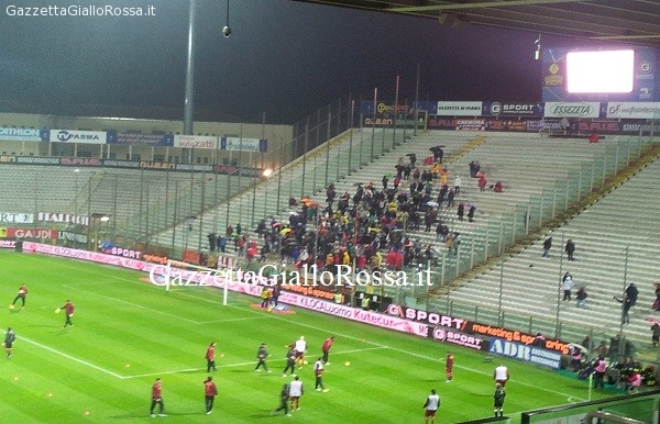 Alle ore 20.00 la Roma è scesa sul terreno del Tardini per le operazioni di riscaldamento. Pioggia incessante ma terreno in perfette condizioni. Presenti circa 200 tifosi.