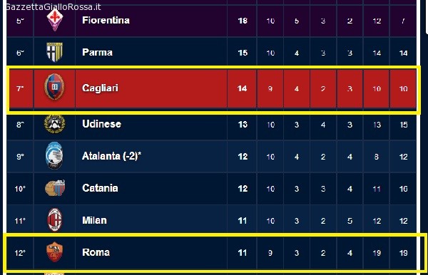 Sul sito ufficiale del Cagliari è presente una versione “personalizzata” della classifica di Serie A: la Roma non ha 14 punti, bensì 11, sia il Cagliari che la Roma hanno una partita da recuperare! Secondo la società sarda, in barba ai regolamenti ed alle decisioni del giudice sportivo, lo 0-3 a tavolino per la gara non disputatasi non è da prendere assolutamente in considerazione.
