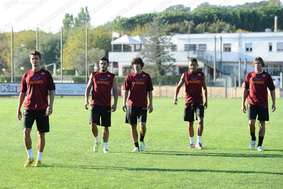 ROMA: 6-1 AGLI ALLIEVI, TRIPLETTA OSVALDO E GOL DESTRO – Dopo la doppia seduta di allenamento di ieri, la Roma e’ ritrovata oggi sui campi di Trigoria per proseguire la preparazione in vista della trasferta di Pescara. Gli uomini di Zeman, dopo un lungo riscaldamento iniziale, sono stati impegnati in una sfida contro gli Allievi. La partitella in famiglia e’ stata caratterizzata da tre tempi da 20 minuti, che hanno visto la Prima Squadra imporsi sui ragazzi allenati da Tovalieri per 6-1: tripletta di Osvaldo e gol di Destro, Pjanic e Nico Lopez. Dodo’, Marquinhos e Stekelenburg hanno svolto lavoro differenziato in campo. Esercizi in palestra per Taddei e Burdisso. Seduta fisioterapica per Lamela.
