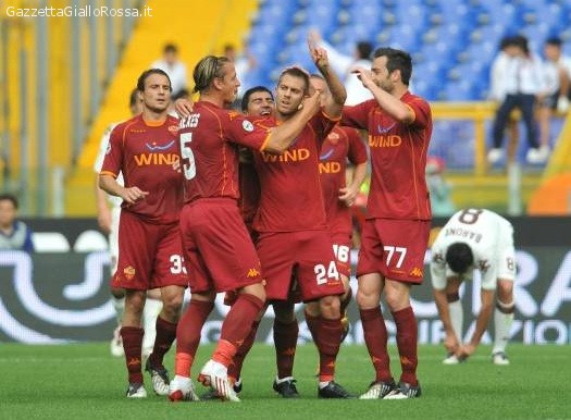 ROMA (4-3-1-2): Artur 6; Cassetti 6, Panucci 6,5, Mexes 6, Riise 6; Brighi 6, De Rossi 6,5, Perrotta 6 (27’Vucinic 7); Pizarro 6; Menez 7 (60′ D’Alessandro 6), Totti 6,5(92′ Filipe).