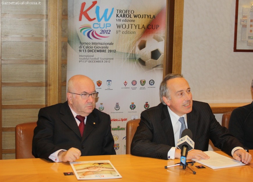 Questa mattina durante la Conferenza Stampa di presentazione del Torneo Internazionale di Calcio Giovanile dedicato alla memoria di Karol Wojtyla, sono state finalmente svelate le squadre partecipanti divise in gironi. La Conferenza stampa si è svolta, come di consueto, nella prestigiosa Sala del Consiglio presso la Federazione Italiana Giuoco Calcio in via Gregorio Allegri presieduta dal “padrone di casa” Presidente Giancarlo Abete e del Presidente della Lega Nazionale Dilettanti Carlo Tavecchio.