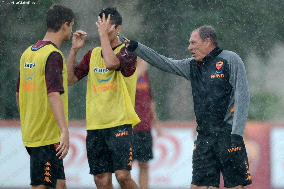 (G.Piacentini) – Un breve discorso alla squadra, invitata a liberarsi dalla paura con cui è scesa in campo nelle ultime gare, e poi in campo a dirigere il suo primo allenamento da tecnico della Roma. Al suo fianco Roberto Muzzi, che gli farà da secondo e che ha scherzato a lungo con Francesco Totti, e Antonio Carlos Zago. Fuori dal campo, ad osservare, Franco Baldini e Walter Sabatini che giovedì, quando torneranno i calciatori impegnati con le nazionali, parleranno con la squadra. Ieri il direttore generale giallorosso si è limitato a presentare ai giocatori il nuovo staff, che peraltro era già tutto «made in Trigoria». Il primo giorno di Aurelio Andreazzoli è trascorso all’insegna della normalità: nessun allenamento massacrante ma tanto pallone, nel tentativo di far recuperare alla squadra un po’ dell’entusiasmo e della brillantezza persi. In questo senso— e non come una vittoria della squadra —bisogna interpretare l’abolizione delle doppie sedute e lo spostamento al pomeriggio degli allenamenti della settimana che porterà alla gara contro la Samp.