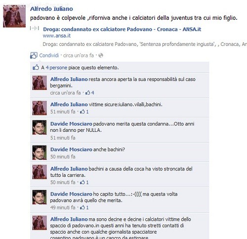 La questione Michele Padovano, fu aggravata dalle parole dal padre di Mark Iuliano, ex difensore bianconero e, ai tempi, compagno di squadra di Padovano nella Juventus. Alfredo Iuliano, accusò l’ex giocatore di essere stato pusher dello spogliatoio e di aver rifornito, fra gli altri, anche suo figlio Mark, oltre a Gianluca Vialli e Bachini. Alfredo Iuliano, lo definì inoltre come un “cancro da espiare” poiché ha rovinato decine e decine di calciatori, attribuendo le colpe principalmente al suo passato difficile, connesso all’essere cresciuto in orfanotrofio e ad aver frequentato fin da piccolo “ambienti difficili”, portando, poi, anche nel mondo calcio le sue cattive abitudini.