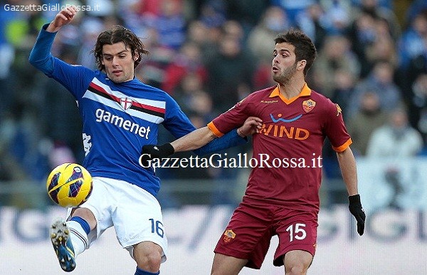 BUONA ROMA — Quella del primo tempo. Gli interpreti sono quanto mai d’attacco, come con Zeman, e forse persino di più. Giocano infatti Osvaldo, recuperato, e Totti da attaccanti. Più Lamela e Marquinho sulle fasce, e Pjanic al centro. Ma il modulo è più prudente: un 3-4-1-2, con Pjanic pronto ad assistere le punte e Totti pronto a trasformarsi in rifinitore. Lamela tiene “basso” Estigarribia, costretto a limitare le sue scorribande. La Roma resta comunque un po’ sprecona. Perchè non concretizzava le quattro occasioni create nel primo tempo. La prima con una percussione centrale di Bradley conclusa malamente. Poi Lamela chiama al tuffo Romero, quindi Totti prova ad accorciare ulteriormente le distanze su Nordhal, secondo cannoniere di sempre di serie A a quota 225: il capitano della Roma è a quota 223, e la sua punizione angolata è messa in angolo dall’attento Romero. L’occasione più grossa, enorme, se la ritrova sul destro Pjanic: calcia a porta spalancata su Costa, che forse tocca con il braccio, che fa un movimento sospetto. Per l’arbitro Celi però no. Comunque un gol sbagliato dal centrocampista bosniaco. E la Samp? Senza l’indisponibile Palombo fatica a far ripartire l’azione. È compatta, attenta. Ma inconcludente, anche se cresce nel finale di tempo. Soriano dovrebbe dare un mano a Icardi, vista l’assenza di Eder, ma siamo al condizionale, appunto. Il centravanti argentino è infatti solissimo là davanti, neutralizzato dai tre difensori centrali di Andreazzoli. All’intervallo è 0-0. Sta stretto agli ospiti come un maglione reduce da una lavatrice sbagliata.