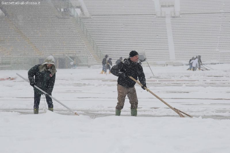 Basta un normale fenomeno meteorologico per mettere in ginocchio il calcio italiano. La sfida tra Bologna e Fiorentina rinviata a martedì, Parma-Catania a forte rischio così come il derby di Milano, per non parlare dello spettacolo offerto a Bergamo. Parlare di manti erbosi riscaldati é troppo per un paese come l’Italia, anche nel 2013. Terzo mondo.
