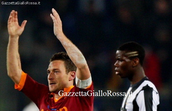 È l’ultima emozione di un primo tempo tutt’altro che spettacolare. In compenso si ricomincia con un’altra marcia, soprattutto la Roma, che dopo tre minuti pesca Osvaldo in area, solo che il numero nove deve calciare prima del ritorno di Barzagli e manda fuori sul secondo palo. Passa un minuto e dall’altra parte Pogba si vede rimpallare un elegante palleggio in area, il pallone arriva a Vucinic, che calcia al volo con il destro senza inquadrare la porta. Sul rovesciamento di fronte, Totti pesca Torosidis in proiezione offensiva sulla destra, il greco anticipa Caceres ma non Buffon, che gli dice di no sul primo palo. C’è qualcosa nell’aria. Minuto numero nove, gran destro dalla distanza di Pjanic, Buffon ci mette i pugni, poco dopo il bosniaco mette un buon cross sulla testa di Osvaldo, che tutto solo gira addosso al portiere. C’è qualcosa nell’aria. Minuto tredici. Pjanic, ancora lui, va a battere una punizione sulla trequarti, la difesa della Juve la ribatte sui piedi di Totti, che esplode un destro terrificante che Buffon non fa nemmeno in tempo a guardare mentre sibila sotto l’incrocio.