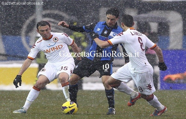 Agguantato il pari, è la Roma a cercare con maggiore insistenza la rete del possibile vantaggio. Il più pericoloso è Pjanic, prima su punizione e poi da distanza raccivinata sugli sviluppi di un corner, ma la mira in entrambi i casi è imprecisa. Il bosniaco ci riprova al 34′, di nuovo su punizione, e stavolta fa centro: destro a giro e Consigli resta immobile. La Roma opera il sorpasso, ma dopo dieci minuti l’Atalanta ristabilisce la parità sempre con Livaja: sul lancio di Carmona il n.7 calcia al volo di sinistro e batte di nuovo Stekelenburg. Si va al riposo su un campo ai limiti della praticabilità a causa di una fitta nevicata, poi nella ripresa le condizioni migliorano ma il ritmo cala vistosamente. A riaccendere il match ci pensa Torosidis, che al 71′ segna il suo primo, pesantissimo gol in serie A: Bradley lo pesca sul secondo palo con un lungo lancio e il greco di testa scavalca Consigli. L’Atalanta non molla ma è Stekelenburg a salvare la Roma all’80’ volando a deviare in corner il colpo di testa di Lucchini. È l’ultima occasione per i bergamaschi, che all’89’ restano in 10 uomini per l’espulsione di Contini (mani sul volto di Perrotta). Prima del triplice fischio Lamela ha l’opportunità per arrotondare il risultato ma si fa ipnotizzare da Consigli.