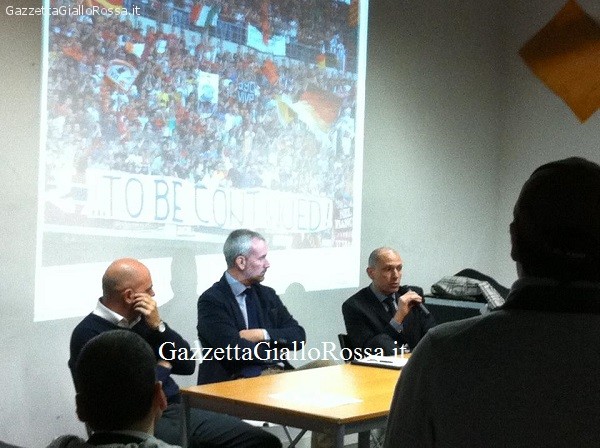 MEETING MYROMA – Nella giornata odierna si è tenuto un convegno presso lo “Spazio Informale”, in Via dei Cerchi 75 dal titolo “AS ROMA CARD AWAY: PER IL MONDO SEGUENDO LA ROMA”. L’occasione per illustrare il nuovo progetto dell’AS Roma volto a consentire ad un numero sempre maggiore di tifosi di poter seguire la squadra del cuore in trasferta. Tra i partecipanti come relatori diversi esponenti di spicco dell’associazione come Walter Campanile (Presidente MyROMA), Avv. Lorenzo Contucci (Vice Presidente MyROMA), Paolo Cento (Socio MyROMA). “Non ricordo eventi cosi diretti tra un club ed i propri tifosi”. Queste le parole di Campanile per presentare l’iniziativa della società giallorossa che secondo Contucci costituisce un nuovo modello da perseguire con molte società all’opera per adeguarsi all’idea del club capitolino.