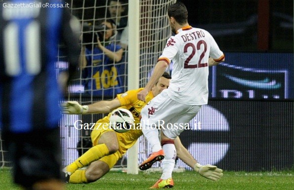 I giallorossi non riescono a venire a capo di una manovra degna di questo nome e rischiano di subire il raddoppio, prima con una girata di Rocchi su cui è pronto Stekelenburg, poi con un gran taglio di Kovacic per Jonathan , conclusione rimpallata. Segnali di risveglio soltanto nel finale: al 35’ Handanovic salva sul suo palo un tentativo di Destro lasciato solo da Alvarez, mentre allo scadere compie un miracolo su Florenzi, al termine di una bella azione iniziata da De Rossi e rifinita da Destro. La ripresa comincia con Balzaretti al posto di Florenzi, uscito zoppicando per una botta alla caviglia, Stramaccioni inverte gli esterni e le cose iniziano a cambiare. Così dopo una buona occasione per Torosidis servito da Lamela, al 10’ è De Rossi a trovare la verticalizzazione per Lamela, che vede Destro sul secondo palo e lo serve, Mattia è bravo ad anticipare l’uscita di Handanovic e mettere la palla nell’angolo lontano. 1-1, in finale c’è virtualmente la Roma, ma resta lo spauracchio dei tempi supplementari. Un pericolo che è lo stesso Destro a vanificare al 24’: De Rossi ha il tempo di guardarsi intorno per cercare il compagno giusto e pesca Balzaretti tenuto in gioco da Juan Jesus, cross basso e destro facile facile dell’attaccante. 2-1, niente supplementari e si può ricominciare a respirare.