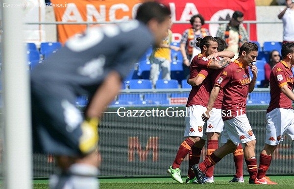 Osvaldo cala il tris, la Roma fa poker. I giallorossi riscoprono il centravanti italo-argentino e travolgono il Siena per 4-0 prendendosi il quinto posto con 55 punti. I giallorossi ipotecano il successo con un primo tempo eccellente: 41 minuti bastano e avanzano per seppellire i toscani sotto 3 gol di ottima fattura. Nella ripresa Osvaldo, che vanta ora 15 centri, completa l’opera con il 4-0 finale. Il Siena, non pervenuto all’Olimpico, viene demolito e affonda nelle zone bassissime della classifica: con 30 punti è da solo in penultima posizione e vede da vicino la Serie B. La Roma, invece, vede da vicino l’Europa League a 4 turni dal termine del campionato. La volata finale dei giallorossi comincia con un autentico show davanti a oltre 40.000 spettatori. La Roma parte con aggressività e raccoglie i frutti al 14′ con una deliziosa combinazione tra Lamela e Osvaldo. Il centravanti innesca l’azione e va in profondità per raccogliere il suggerimento del compagno, davanti a Pegolo sceglie il tocco morbido: palla in rete, 1-0. Passa poco più di un minuto e la Roma concede il bis con un altro gol splendido. Totti indossa i panni del rifinitore, Lamela prova il sinistro al volo dal limite dell’area: Pegolo può solo guardare, 2-0 al 15′. Il Siena sbanda e rischia di incassare anche il terzo gol al 21′, quando la difesa rimedia in extremis su Osvaldo. Per vedere la prima risposta dei bianconeri bisogna aspettare il 22′ e il diagonale di Emeghara, che chiama Lobont al primo intervento della giornata. Lo spettacolo è gradevole e il merito è soprattutto di Osvaldo: diagonale al 26′, palo pieno. L’attaccante fa decisamente meglio al 41′ con il rasoterra che vale il 3-0. L’assist di Florenzi è un invito a nozze, Pegolo non ha nemmeno il tempo di abbozzare la parata e il sipario cala sul match ancor prima dell’intervallo. La ripresa scivola via con un unico sussulto al 67′. Totti cerca il gol ma sbatte su Pegolo, Osvaldo deve solo appoggiare il pallone in fondo al sacco: tris del bomber, poker giallorosso.