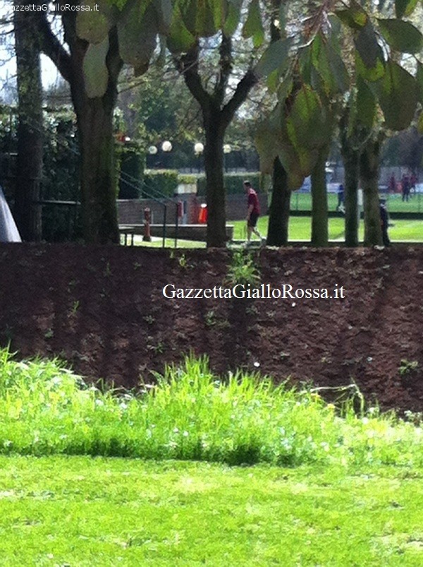 Ore 12:20 Francesco Totti si stacca dal lavoro con il gruppo e inizia una parte di lavoro differenziato, con qualche giro di campo affiancato da Vito Scala. Il resto della squadra svolge esercitazioni sul possesso palla e sui tiri in porta.