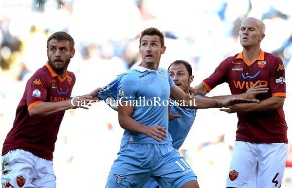 POCHE EMOZIONI – Nel primo tempo latitano le emozioni. La paura di perdere blocca le gambe e la testa dei ventidue in campo. La Lazio è leggermente più spigliata ma la noia regna. Gli errori in fase di impostazione e in appoggio non si contano. Si gioca con lanci lunghi che non arrivano mai a destinazione. Petkovic non rischia e mette in campo dal primo minuto Onazi al posto del convalescente Gonzalez. Andreazzoli schiera Destro nell’undici titolare e lascia in panchina Osvaldo. Il nervosismo è protagonista in campo. Passa un minuto dal via e Ledesma viene subito ammonito. Non sarà l’unico. Sul tabellino dell’arbitro Orsato finiranno anche Balzaretti, Marquinho, Totti, Burdisso, Hernanes, Ledesma, Klose e Lulic. I campioni più attesi del match non si vedono: Totti è seguito come un’ombra da Ledesma, Hernanes è un fantasma, Klose non riceve quasi mai palloni giocabili. I giallorossi spingono sulla sinistra con un buon Marquinho, Lamela viene spesso ignorato. Al 10′ Bradley entra in percussione in area laziale ma sul più bello calcia a lato. Lulic ha un paio di occasioni dal limite ma Lobont si oppone sempre in sicurezza. Le squadre sono abbottonate, incapaci di rischiare la giocata. Nella Lazio brillano Candreva e Onazi, sicuramente i più determinati. Il risultato potrebbe sbloccarsi al 34′ quando Lamela perde una palla dal limite e permette a Lulic un cross per la testa di Klose che esalta i riflessi di Lobont. La risposta della Roma arriva proprio in chiusura di primo tempo su cross dalla destra di Marquinhos e stacco di testa di Destro che di testa colpisce alto di un soffio.