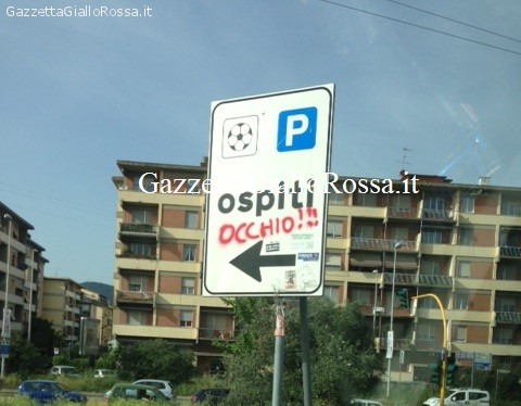 Preoccupante o ironica. Dipende dai punti di vista. “occhio”, è questa l’accoglienza apparentemente minacciosa che i tifosi viola, finiti diverse volte nei guai questa stagione (vedi Galliani), hanno riservato a squadra e supporters ospiti all’arrivo allo stadio Artemio Franchi di Firenze.