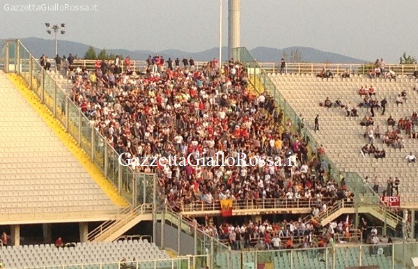 FIORENTINA-ROMA Il “formaggino” gremito di tifosi giallorossi Archivio PRIMO PIANO by - 4 Maggio 2013 Molti i tifosi della Roma presenti all’Artemio Franchi per la gara tra Roma e Fiorentina. Alle ore 19.30 il settore riservato ai tifosi giallorossi, denominato “Formaggino”, era già completamente gremito di tifosi provenienti da Roma. Tifosi As Roma al Franchi