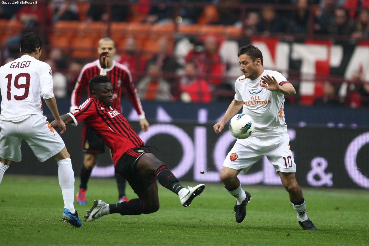 U UNO Nelle ultime otto stagioni la Roma ha sempre segnato almeno un gol contro il Milan al Meazza.A iniziare la serie positiva è stato Vincenzo Montella nell’1-1 del 2004, ultimo marcatore Osvaldo, autore del momentaneo vantaggio giallorosso il 24 marzo 2012.