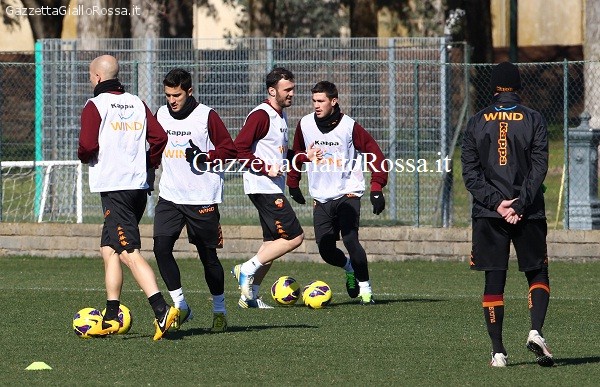 Ore 16:00 Risultano tra gli assenti anche Perrotta (problema al flessore), Marquinhos (retto femorale) e Torosidis (permesso accordato). Per De Rossi e Balzaretti lavoro differenziato in palestra. Lavoro differenziato anche per Stekelenburg.