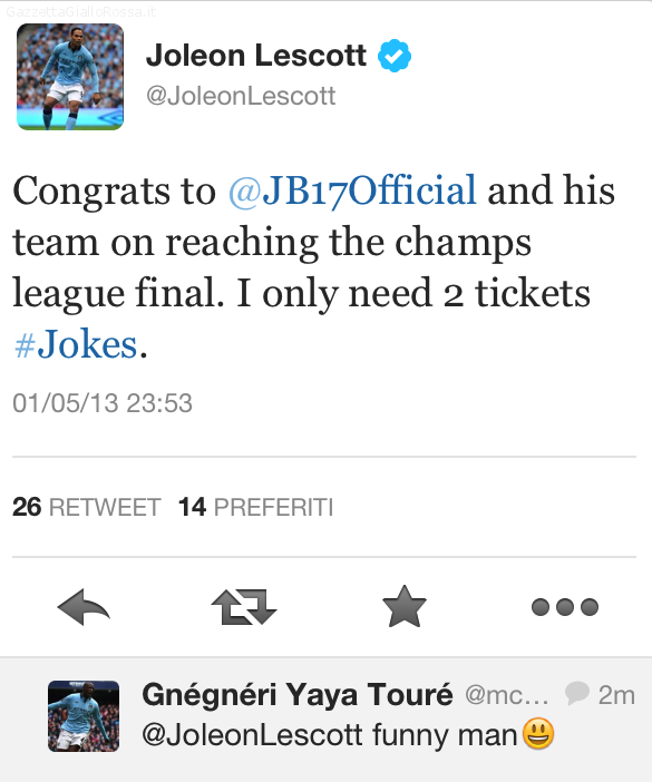 e allo scroccone! Il premio va a Joleon Lescott (a pari merito con Yaya Tourè)…