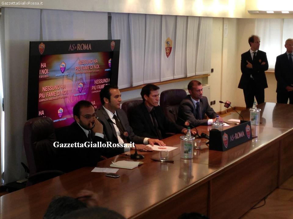 “Sono in contatto con l’As Roma da due anni. E’ uno dei club più grandi d’Europa e per me è fonte di onore ed orgoglio essere qui. La cosa importante non è essere la prima scelta ma divenire l’allenatore ed imporsi nella squadra stessa”.