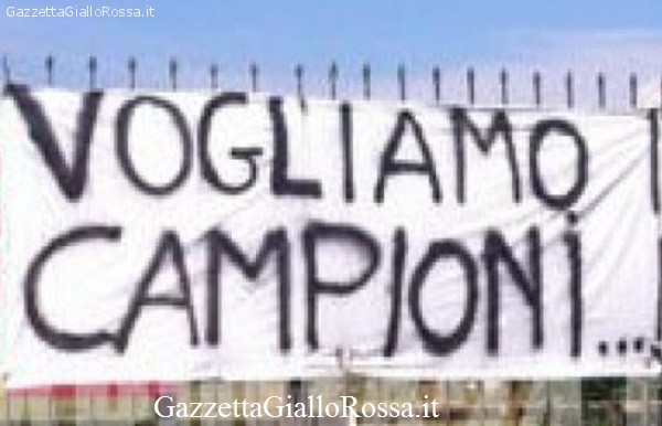 Mentre Rudi Garcia veniva presentato dal Ceo Italo Zanzi nella conferenza stampa, all’esterno del centro tecnico di Trigoria è stato esposto un’eloquente striscione da parte dei tifosi. “Vogliamo i campioni”, il messaggio dello striscione. Da segnalare inoltre all’esterno del centro sportivo delle scritte lasciate sull’asfalto a sostegno di Daniele De Rossi.