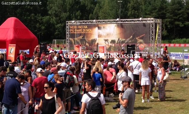 VILLAGGI  Sono tanti i club che hanno inserito il village all’interno del ritiro: Roma, Juve, Inter, Sampdoria (che lo sperimenta anche in campionato, come la Roma), Lazio, Fiorentina, ultima arrivata. La Roma è avanti: 30 persone, l’animazione di Willy e Omar, i gonfiabili, lo sparapalloni, due calciatori che diventano ogni giorno commessi del negozio e salgono sul palco, biliardini e subbuteo. E il camp dove 100 bambini si allenano come la squadra con gli istruttori giallorossi e ricevono la divisa ufficiale. Il «Summer village» dei campioni d’Italia vince la sfida delle presenze. Nei weekend ha toccato le 5 mila. Si sono registrate 55 mila persone, che gratuitamente salgono ai campi con la navetta del club. Anche i parlamentari juventini si sono fatti coinvolgere. Il clou è il palco con Cristina Chiabotto, volto di Jtv, il canale bianconero, che intrattiene i campioni della squadra. Il bello sono i quiz che assicurano maglie, pantaloncini e calzettoni. Dalle 9.30 alle 20 a Chatillon è festa. La Coca Cola ha ideato momenti di intrattenimento. Al suo stand si può calciare rilevando la velocità del tiro. Per assistere agli allenamenti di Conte si paga. È l’unica soluzione davanti all’eccessiva richiesta. La Lazio ha ampliato la sua area. Come i cugini, punta sui gonfiabili, sul biliardo che si gioca con i piedi. E sul Soccer Matrix: va colpito il numero annunciato dall’altoparlante. Ma la curiosità vera è la foto con l’aquila Olimpia: costa 30 euro. Ah, però. Quando il falconiere Bernabè la fa uscire c’è chi riesce a farla gratis. Se lo sa Lotito…