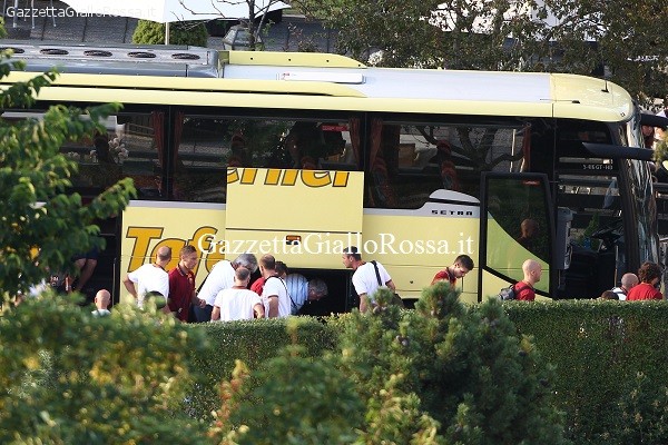 (A.Pugliese) Almeno stavolta non c’è stata contestazione, anche se qualche applauso ironico all’arrivo del pullman a Riscone è arrivato lo stesso. Ma i pochi che volevano manifestare le proprie rimostranze si sono arresi subito, un po’ come quelle 60-70 persone in attesa davanti all’hotel Royal Hinterhuber per vedere da vicino i giocatori della Roma: niente, si sono dovuti accontentare di veder sfilare veloce il pullman (arrivato circa alle 20, con un’ora di ritardo sulla tabella di marcia). Qualcuno ha pianto alla vista di Totti, qualcun altro ha applaudito il capitano, quasi tutti ci sono rimasti male: speravano di entrare sul piazzale e vedere almeno lo sbarco dei propri beniamini.