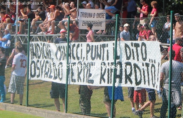 (A. Angeloni) Uno striscione (“Indichi, minacci, punti il dito, Osvaldo verme rifardito!”) e tanti cori (“Pezzo di m…a”, “Osvaldo ma quali 200 gol, ne hai fatti 25. Buciardo!”, “Osvaldo via dalla Roma”) contro l’attaccante. A nulla è servito il tentativo di riconciliazione della sera precedente in un pub di Riscone, protagonisti l’avvocato Baldissoni e alcuni esponenti del gruppo di quei tifosi, una trentina, che stanno contestando Osvaldo qui in Val Pusteria.