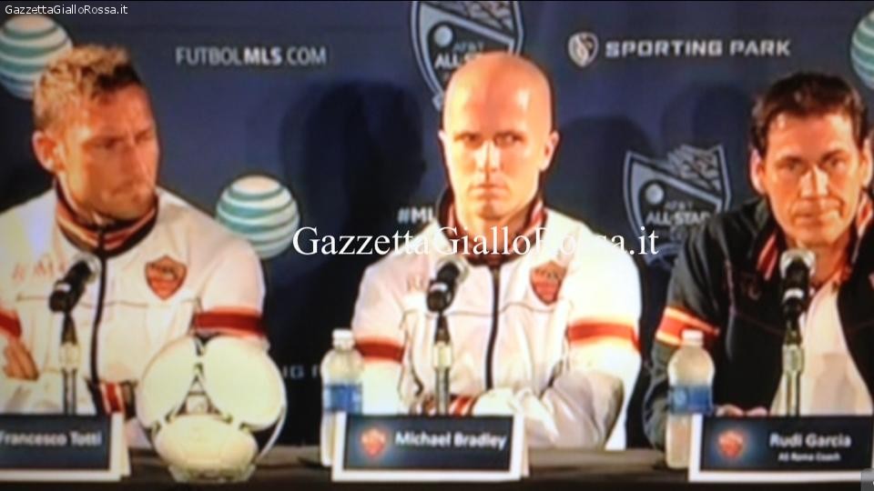 Domani, quando in Italia saranno le 4 di notte, lo sfiderà sul campo nell’amichevole d’eccezione con le stelle della Major League Soccer: «Affrontare gente di questo calibro fa sempre piacere. È una partita che non abbiamo mai giocato e siamo contenti che ci abbiano invitato». Per Bradley, in tuta bianca come il capitano seduto accanto a lui, «è un orgoglio giocare a Kansas», così come lo è allenarsi tutti i giorni con un campione come Totti, per cui non lesina complimenti: «Per me è una divinità per quello che fa tutti i giorni in campo. Siamo diventati amici, è un onore essere qui insieme a lui. Non ho parole per esprimermi. È tra i i migliori giocatori al mondo, vuole sempre migliorarsi. È stato sempre leale alla sua squadra».