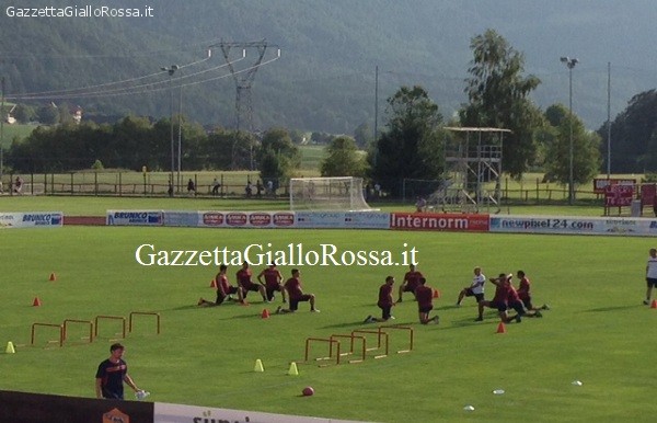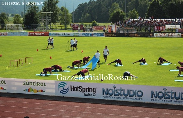 Ore 17:45 La squadra, ancora divisa in due gruppi di lavoro, prosegue la fase atletica sul campo principale di Brunico: sulla pista atletica effettuano le “navette” Pjanic, Torosidis, Crescenzi, Borriello, Benatia, mentre gli altri si concentrano su esercizi sull’equilibrio con la palla medica: il nuovo arrivato Jedvaj lavora in coppia con Burdisso.