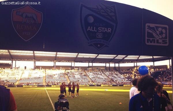 Ore 2.30 I giallorossi sono in campo per la consueta ricognizione. Pallotta invece aspetta il calcio d’inizio seduto in panchina.