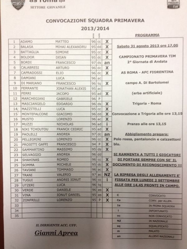 La Primavera guidata da Alberto De Rossi scenderà domani in campo contro la Fiorentina per la seconda giornata di campionato