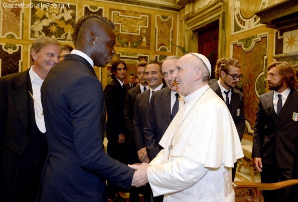 È stato – l’incontro tra il Papa e Balotelli – il momento più toccante della visita in Vaticano delle nazionali di Italia e Argentina, alla vigilia di una partita organizzata per dare il benvenuto al nuovo Papa, che ha subito chiarito: “Sarà un po’ difficile per me fare il tifo, ma per fortuna è un’amichevole, e che lo sia veramente, mi raccomando”. Ha scherzato, il pontefice, anche con il presidente federale Giancarlo