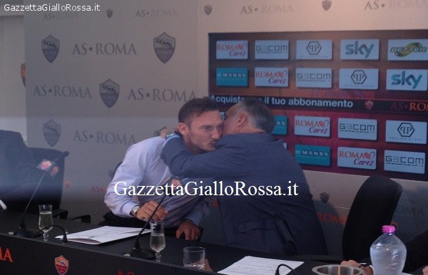 (M. Evangelisti) Stavolta paga lui. Due tavolini di derrate alimentari, pizza di vari gusti da una parte, prosecco e cocktail di frutta dall’altra. Offre Francesco Totti: ha preso tutto alla pizzeria sotto casa. Così festeggia e spende i primi soldi degli Accordi di Trigoria, storici documenti firmati ieri davanti ai rappresentanti dei mezzi di comunicazione, il capitano e il presidente James Pallotta che scrivono i rispettivi nomi sulle righe tratteggiate, cerchiate di umidità dal fondo dei bicchieri. (…) Pallotta ha cercato di mantenere il tutto entro i confini della razionalità, appunto la missione impossibile degli americani a Roma: «Non c’è mai stato il minimo dubbio sulla permanenza di Totti, e da leader qual è. Abbiamo dovuto rinviare la definizione del suo contratto perché c’erano molti altri impegni più urgenti, la scelta dell’allenatore, la campagna acquisti. Per quanto mi riguarda, tutto è avvenuto nei tempi dovuti».