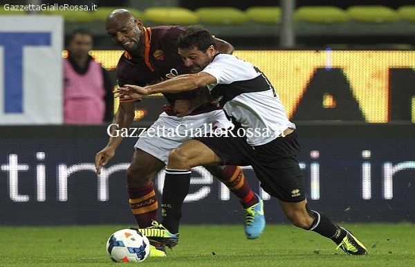 FASCE DECISIVE — Donadoni opta per la difesa a quattro e rischia dall’inizio Gargano (nonostante le fatiche transoceaniche), Garcia lancia invece Ljajic (fumoso), che vince il ballottaggio con Gervinho. Con Totti come falso nove, tocca a Pjanic cambiare gli equilibri in corsa della Roma, che a seconda della posizione del bosniaco si plasma dal 4-3-3 al 4-2-3-1. Ma è soprattutto il Parma a rendersi pericoloso dalla fasce, dove al 9′ su traversone di Gobbi è Biabiany a mancare di un soffio il tap-in decisivo. Poi un destro da fuori di Totti ed un bel fraseggio volante Maicon-Pjanic-Maicon mettono i brividi a Mirante. Ma è ancora Biabiany, al 24′, ad avere il pallone giusto: angolo di Cassano, sponda di testa di Parolo, con il francese che calcia alto a porta vuota dal limite dell’aria piccola. Ed alla Roma va bene che su un paio di ripartenze con la squadra spaccata in due, i gialloblù perdono il guizzo decisivo. Al 35′, poi, è Amauri (su sponda di Parolo) ad impegnare De Sanctis da fuori. Il Parma gioca meglio ed al 39′ passa, con Biabiany che brucia Castan di testa e si riscatta delle occasioni precedenti girando in rete un cross morbido di Cassani. E tre minuti dopo gli emiliani sfiorano anche il 2-0, con un colpo di genio di Cassano che pesca nello spazio Biabiany, sul cui traversone basso Amauri è in ritardo.
