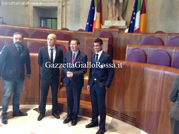 Oggi alle ore 14:15, presso l’Aula Giulio Cesare del Campidoglio, il sindaco Ignazio Marino incontrerà i due calciatori di Roma e Lazio in vista del derby di domenica, per lanciare un appello per il fair play e contro il razzismo. In rappresentanza per la squadra giallorossa ci sarà Michael Bradley, mentre per i biancocelesti sarà presente Ederson.
