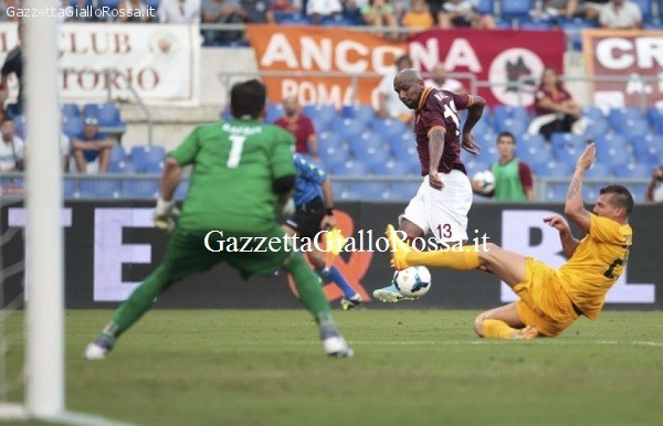 PRIMO TEMPO – Garcia ripropone 9/11 della formazione che ha battuto il Livorno: esordio di Strootman e Gervinho dal primo minuto, fuori Bradley e Borriello. Mandorlini dà fiducia a Toni dopo la doppietta di domenica scorsa; Jorginho in cabina di regia. Subito occasionissima per Florenzi al 3′: il centrocampista romano si ritrova solo davanti a Rafael ma manda incredibilmente fuori. La Roma gioca con semplicità e fraseggi corti, sembra padrona del campo e ha due buone chanches per il vantaggio con Gervinho e Pjanic. Tentativo anche per Strootman dalla distranza, ma sulla ribattuta Florenzi non riesce a ribadire in rete. I giallorossi si rendono ancora pericolosi al 26′ con un bolide su punizione di Totti, poi è ancora l’olandese a scaricare la bomba da fuori dieci minuti più tardi. Nonostante il grande possesso palla dell’undici di Garcia, si sente molto l’assenza di una punta e la prima frazione si chiude sullo 0-0.