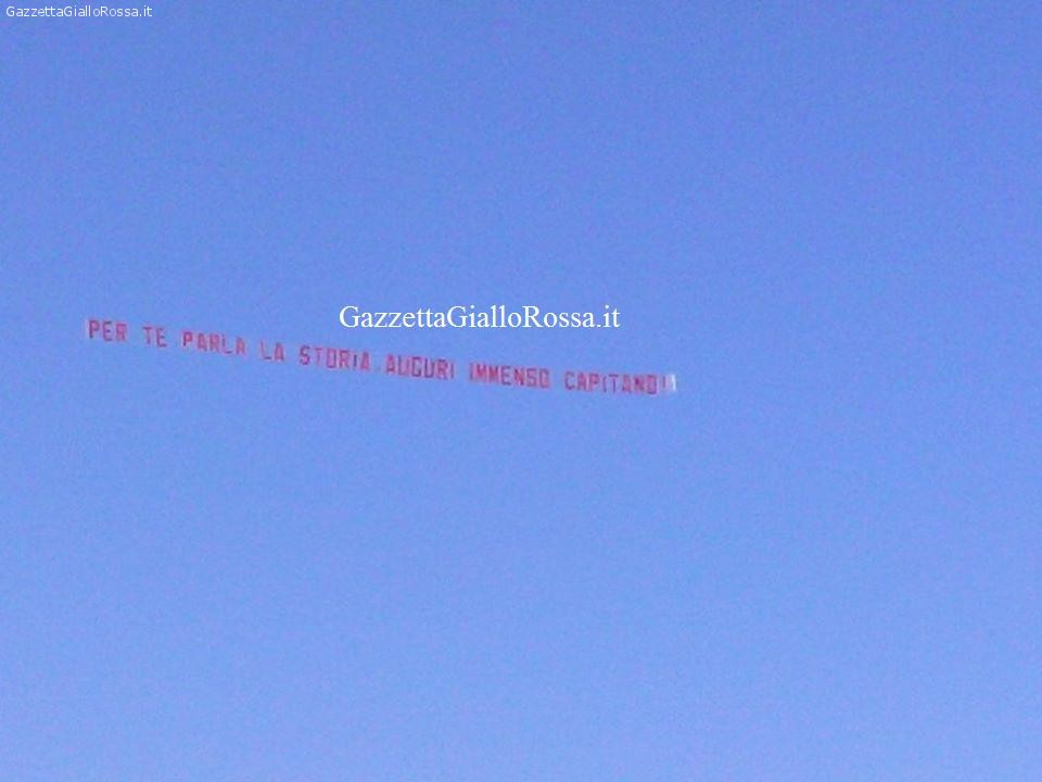 Ore 16:44 Messaggio su un aeroplano che sorvola il Bernardini: “Per te parla la storia. Auguri immenso capitano”.
