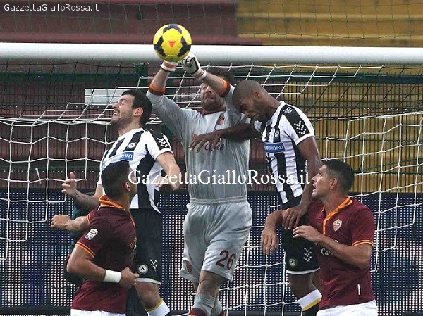 PORTIERE: E’ una furia. Protesta, sbraccia, urla, sgrida ed esulta come un ossesso. La sua esaltante corsa “sotto il settore” (il cui video a 24 ore di distanza ha già sfondato il muro delle 100.000 visualizzazioni) è l’essenza stessa della prova romanista ad Udine: grinta, tenacia e perfetta coesione nello spirito con la massa giallorossa che ha invaso il capoluogo friulano. Ma 591’ minuti d’imbattibilità non si conquistano soltanto grazie al più fumantino degli atteggiamenti. De Sanctis, infatti, arriva dappertutto in uscita e dove non arriva, come in occasione del tiro di Muriel, viene aiutato dai legni. Fortuna audaces iuvat: non smetteremo mai di ripetercelo.