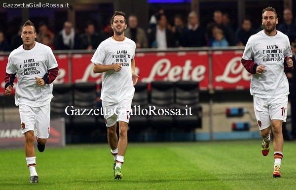 INTER-ROMA 0-3 Le dichiarazioni, le interviste e le foto dei protagonisti (VIDEO, AUDIO, FOTO) Archivio PRIMO PIANO by - 7 Ottobre 2013 Inter Roma Ecco il riepilogo delle emozioni della sesta giornata di campionato. Dopo LO 0-3 fissato allo stadio Meazza contro l’Inter, sono queste le impressioni dei giocatori giallorossi nel post partita: INTER–ROMA VISTA DA DE SANCTIS De Sanctis L’INTERVISTA A FRANCESCO TOTTI LE PAROLE DI TOTTI Totti LA GIOIA DI FLORENZI LE DICHIARAZIONI DI FLORENZI Florenzi LE IMPRESSIONI DI RUDI GARCIA Rudi Garcia LE PAROLE DI SABATINI Sabatini L’INTERVISTA DI PJANIC Totti Pjanic De Rossi LA SORPRESA DEI TIFOSI Tifosi Fiumicino LA FOTOCRONACA DELL’INCONTRO Pre-partita Inter-Roma GLI HIGHLIGHTS DEL MATCH Totti La redazione di GazzettaGialloRossa.it