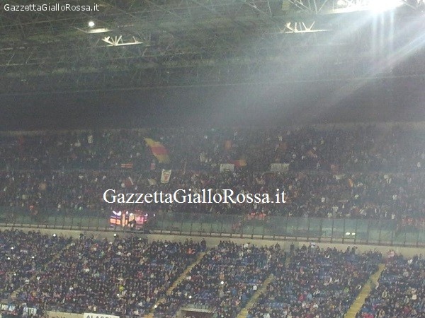 Ore 20:15 I giocatori giallorossi entrano in campo sotto lo sguardo dei 4000 tifosi romanisti stipati nel settore ospiti.