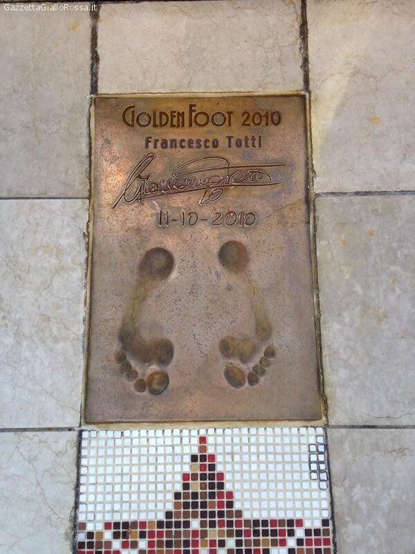 Tramite il proprio profilo Twitter L’AS Roma ricorda, anche con una foto, la presenza di capitan Francesco Totti tra le leggende di Montecarlo. Infatti, l’undici ottobre 2010 il numero dieci giallorosso ha lasciato le impronte dei suoi piedi per il famoso Golden Foot.
