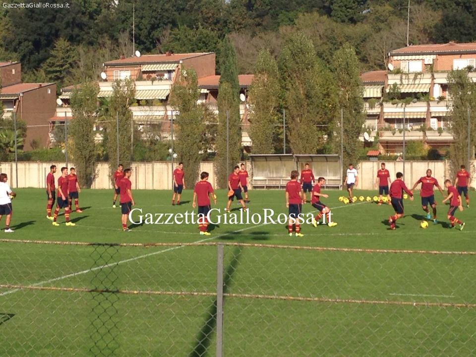 Ore 16:10 La squadra è divisa in due gruppi: da un lato tiri in porta su suggerimento di Castan e Pjanic, dall’altro tiri in porta con sponda di Andreazzoli.