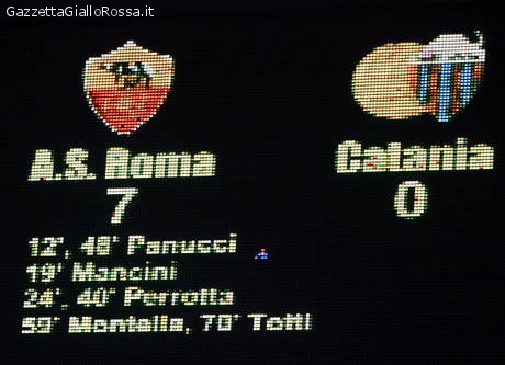 Con il Catania in 10, gli automatismi della squadra di Spalletti trovano ancora più spazio per mettersi in moto e il Catania viene letteralmente seppellito dalle folate offensive della Roma.