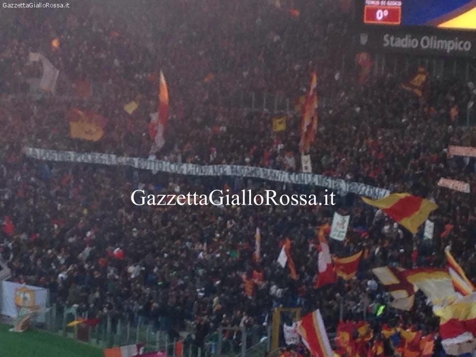 GAZZETTA GIALLOROSSA Esposto in sud striscione (FOTO) Archivio PRIMO PIANO by - 22 Dicembre 2013 Striscione Prima dell’inizio di Roma-Catania i tifosi giallorossi hanno esposto uno striscione in Curva Sud contro le ultime decisioni del giudice sportivo “LA VOSTRA IPOCRISIA CI HA ROTTO I COGLI..I, NOI ANDIAMO AVANTI CON LE NOSTRE TRADIZIONI”