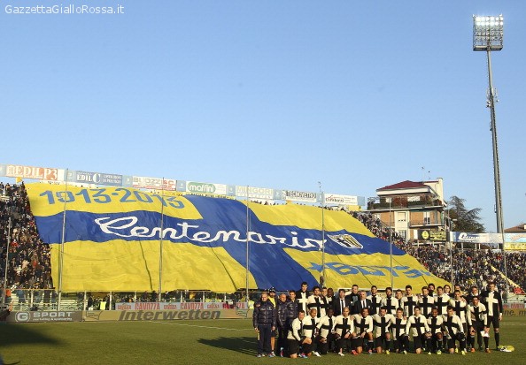 Nella giornata del suo 100esimo compleanno la squadra ducale non sfoggia la migliore prestazione dell’anno (scialbo 0-0 casalingo contro il Cagliari), ma ha il pregio di scendere in campo con quella che può essere definita una delle più belle maglie di questa stagione: la casacca indossata nella sfida contro i sardi infatti, rappresentava la copia esatta della prima maglia crociata bianconera usata dal club nella sua storia senza alcuno sponsor o marchio e con i numeri in oro. A fare da cornice poi l’enorme striscione della curva nord ha festeggiare l’evento con un’enorme bandiera crociata gialloblù con la scritta “1913-2103 centenario”. Vecchie maniere.