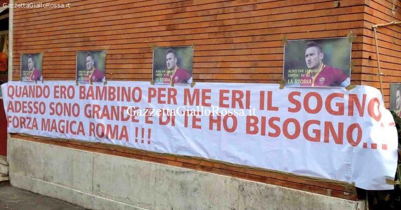 A Porta Metronia, quartiere dove è nato il numero 10 giallorosso, i tifosi giallorossi hanno deciso di fare una sorpresa al proprio capitano con diverse foto e striscione che recitavano: