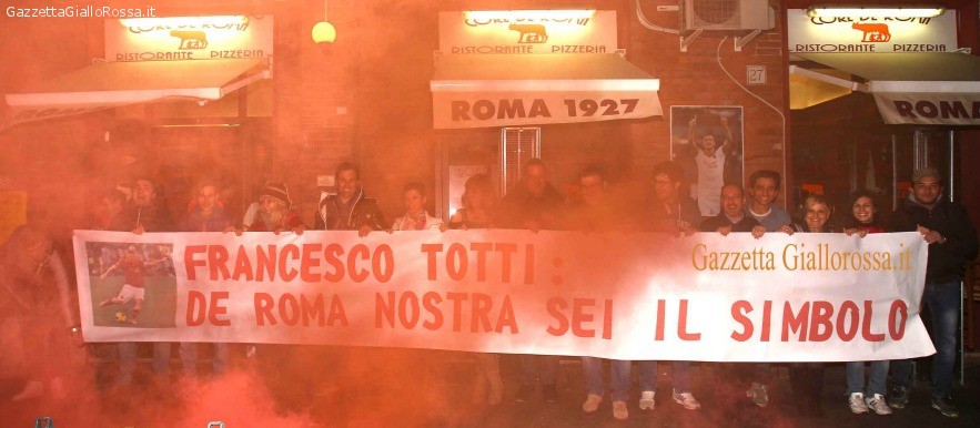 Continuano le dimostrazioni d’amore nei confronti di Francesco Totti, da parte dei tifosi della Roma. Proprio dove è nato il Capitano giallorosso, in via Vetulonia, alcuni tifosi si sono radunati per esporre uno striscione dedicato al numero 10 romanista. Questo il messaggio: