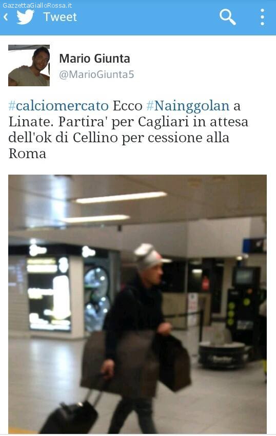 21.35 Nainggolan è all’aeroporto di Linate e si sta imbarcando per Cagliari. Farà ritorno in Sardegna in attesa dell’ok di Cellino al suo trasferimento alla Roma.