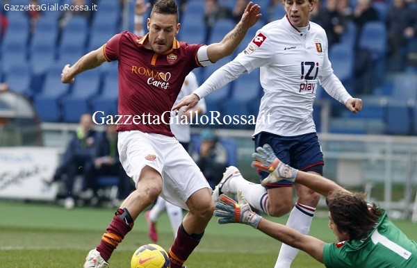 TOTTI E MAICON CHIUDONO I CONTI – Il Genoa ha accusato il colpo e, dopo aver rischiato su un contropiede di Gervinho, ha incassato il raddoppio: l’ivoriano è andato via sulla destra e ha smarcato al tiro Totti che con un destro deviato da Manfredini ha trovato il modo per mettere a segno il 231° gol in serie A. I grifoni hanno provato ad alzare il baricentro ma al 43′, di rimessa, sono stati puniti ancora da Maicon che, servito solo in area da Florenzi, ha comodamente battuto Perin per la terza volta.