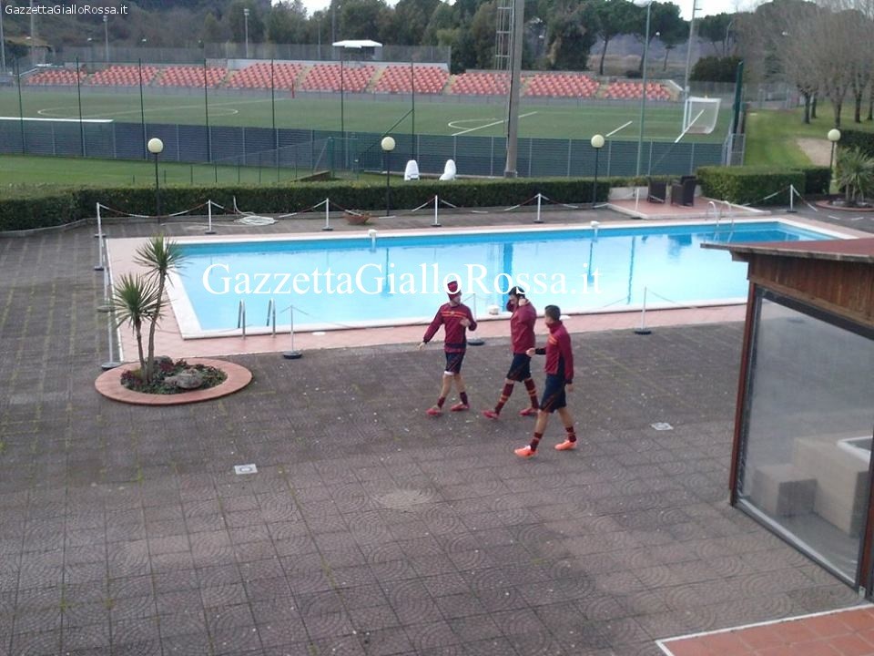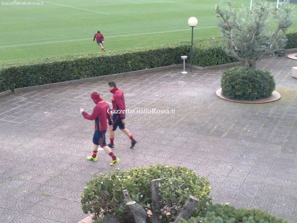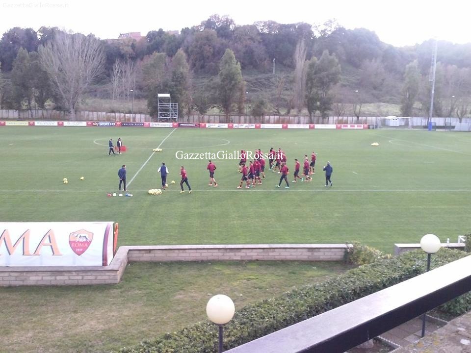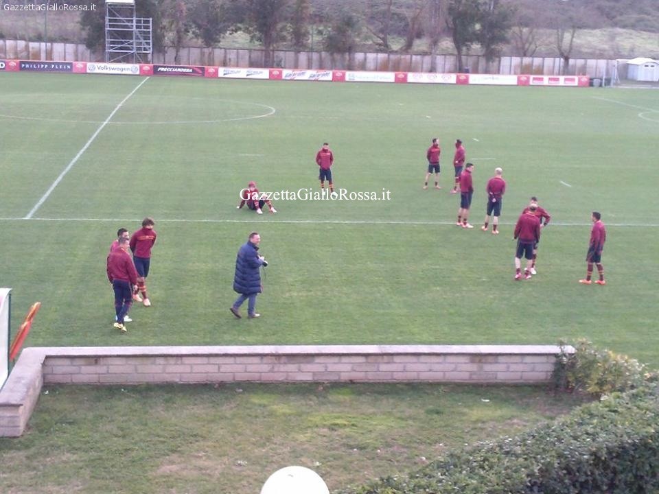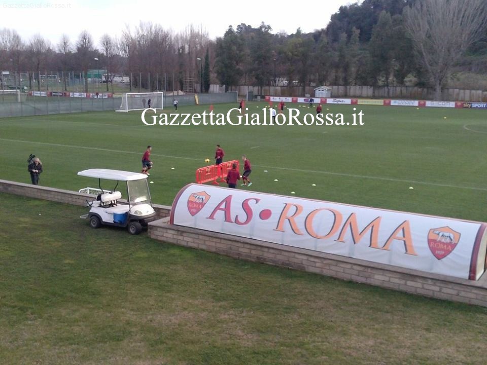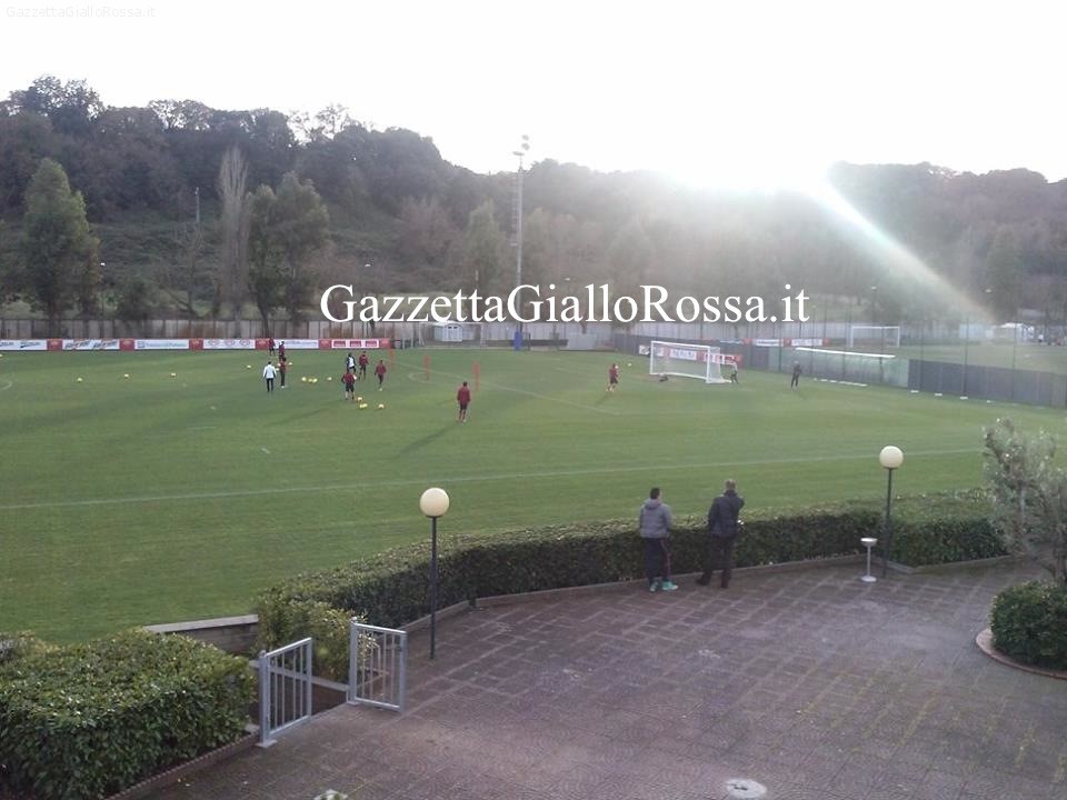 Ore 15:10 – La squadra scende in campo per iniziare le operazioni di riscaldamento. Balzaretti svolge differenziato in campo, mentre i suoi compagni sono impegnati in una corsetta blanda intorno al campo. Assente Lobont. Per ora anche Florenzi è assente sul terreno di gioco.